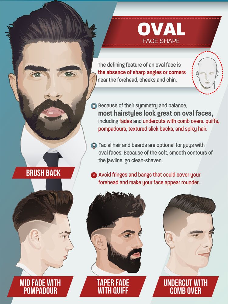 A shaven head looks remarkable on oval faced men. Discover 68 side part hairstyles for men and comb overs that impress. Pompadour This uber-popular cut is perfect for oval faces because it brings style and drama without dropping any locks in your face.